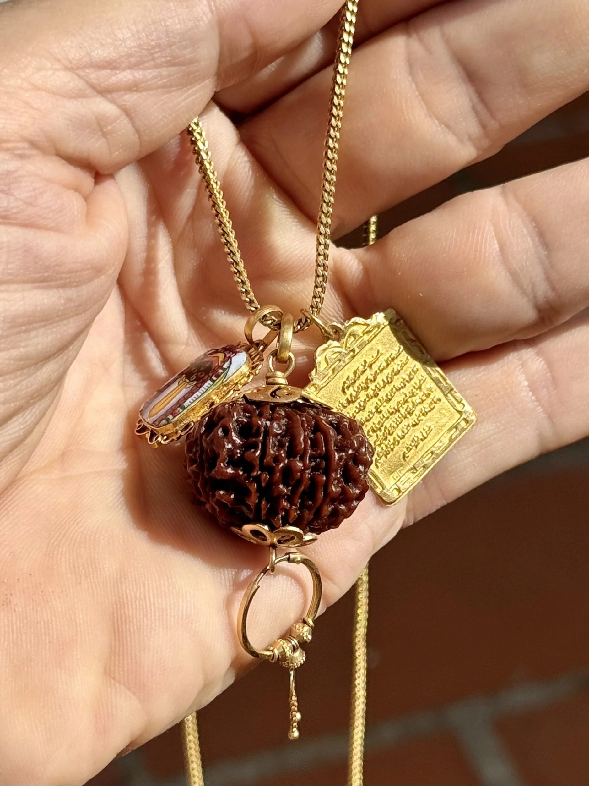 The full Siddha Mala, comprised of all these beads, is considered extraordinarily potent. It is often said to contain a miniature cosmos of divine energies. Traditionally, wearing the 1–14 Mukhi beads together "acts as a protective barrier, warding off negative influences and appeasing malevolent planetary energies." It elevates the wearer's aura and embodies the blessings of numerous deities at once. Practitioners report that it aids in chakra alignment and brings physical, mental, and spiritual balance. Modern spiritual writers note that a Siddha Mala can "clear negative energy, boost intuition, and attract divine blessings," making one feel more spiritually aware with positive life changes. In essence, this mala supports protection, spiritual growth, prosperity, and intuitive wisdom all at once.